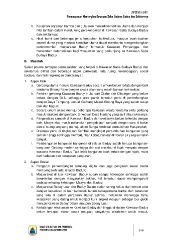 Selain potensi terdapat permasalahan yang terjadi di Kawasan Saba Budaya Baduy dan