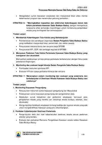 • Mengadakan survei kepuasan wisatawan dan masyarakat lokal untuk menilai