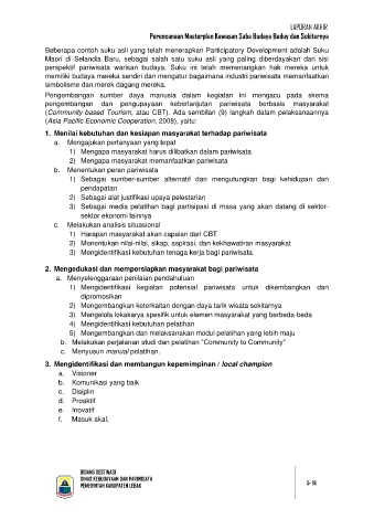 (Community-based Tourism, atau CBT). Ada sembilan (9) langkah dalam pelaksanaannya