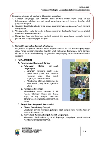 Pengelolaan sampah di kawasan wisata seperti kawasan inti dan kawasan penyangga