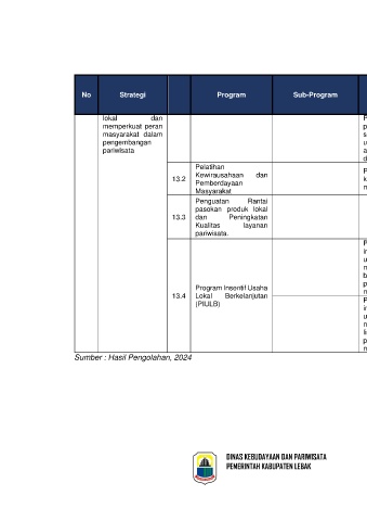 13.2 kewirausahaan untuk Pariwisata (DISBUDPAR)