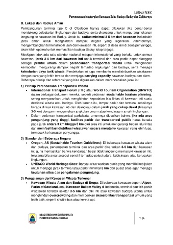 dan budaya, penempatan terminal dan area parkir disarankan 3-5 km dari kawasan