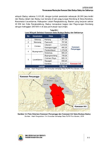 Gambar 3.2 Peta Orientasi Kawasan Penyangga dan Kawasan Inti Saba Budaya Baduy